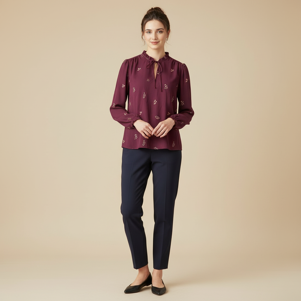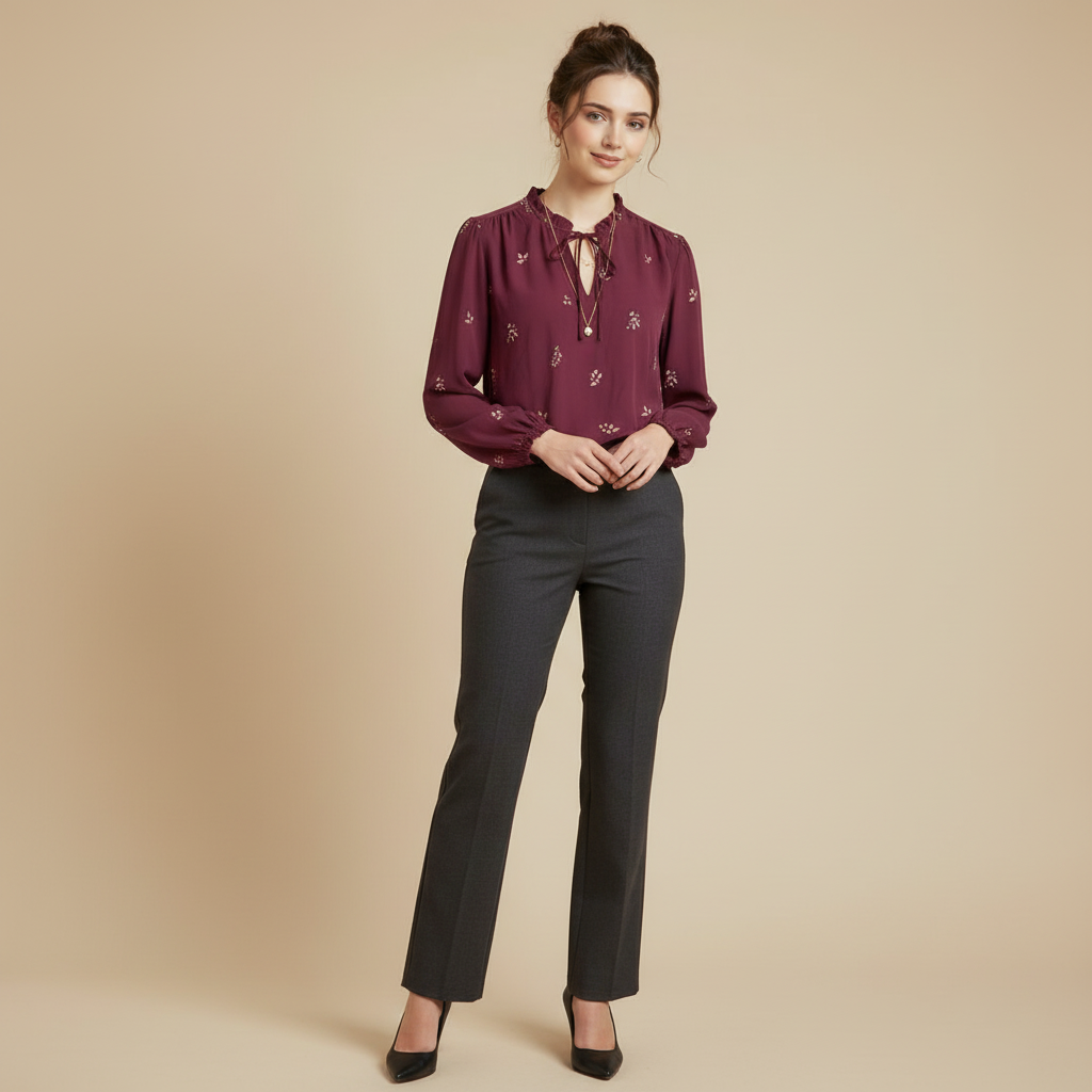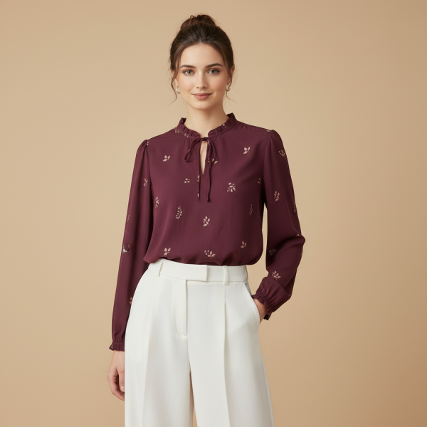This versatile long sleeve blouse offers a flattering fit and lightweight feel, ensuring all-day comfort while keeping you stylish. Whether you’re dressing for work or a casual outing, this blouse adds a refined touch to any look.