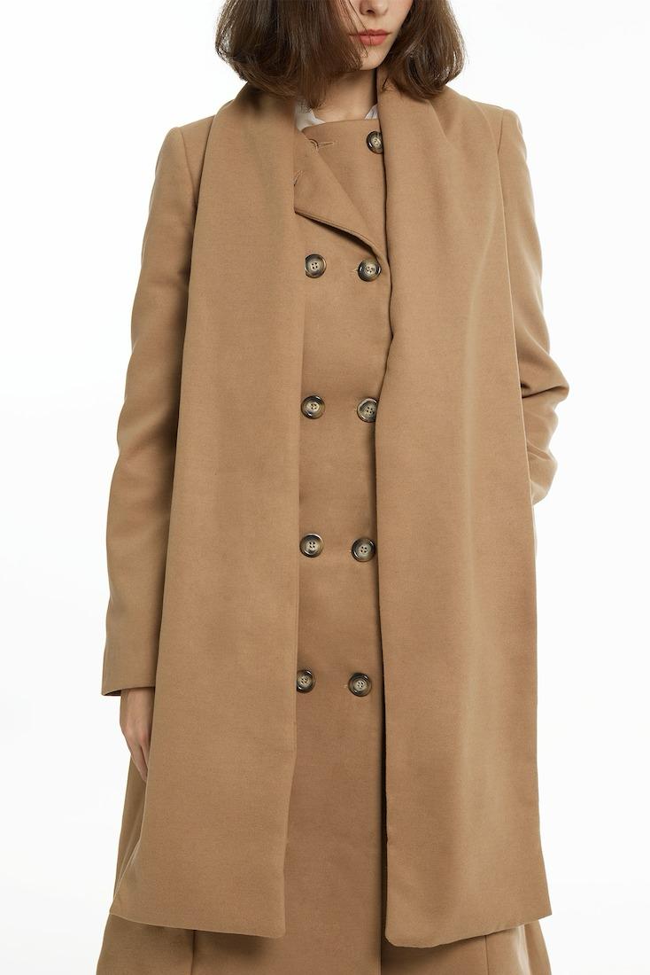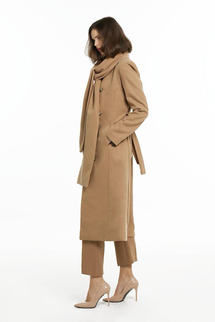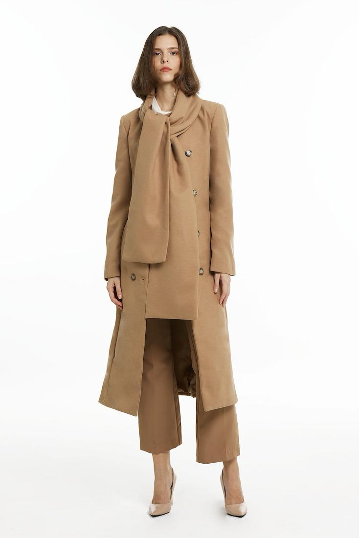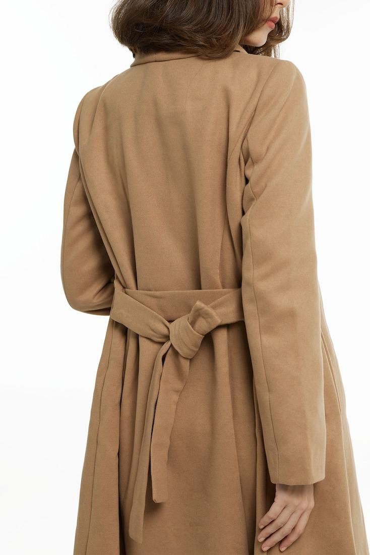 Pair this coat with tailored trousers and heels for a polished office look, or dress it down with jeans and boots for a chic weekend ensemble. The versatile camel color complements a wide range of palettes, making it a wardrobe staple for seasons to come.