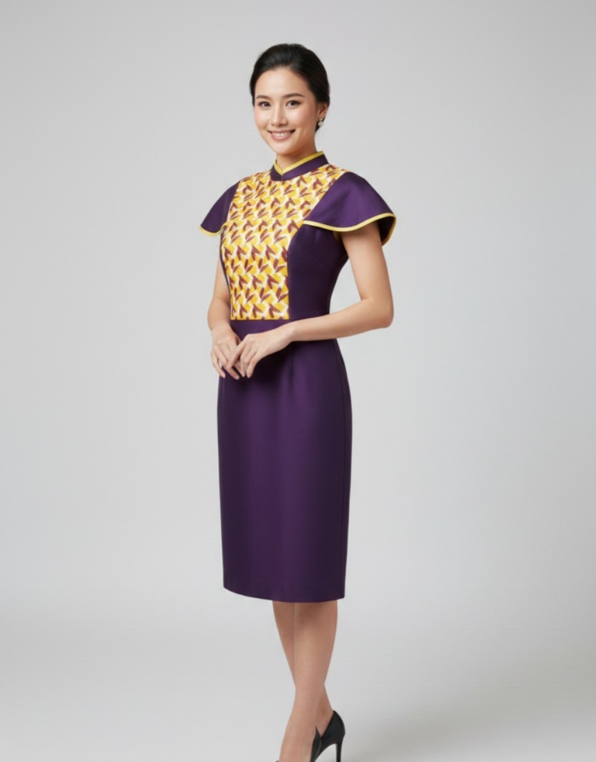 Product Details: Elevate your festive wardrobe with this Modern Cap-Sleeve Cheongsam from TASI NEW YORK. This sophisticated piece blends traditional heritage with a bold, contemporary aesthetic, making it an ideal choice for Lunar New Year celebrations or formal evening events.