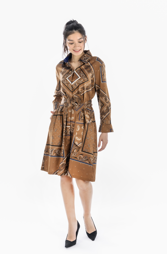 Printed Belted Shirt Dress