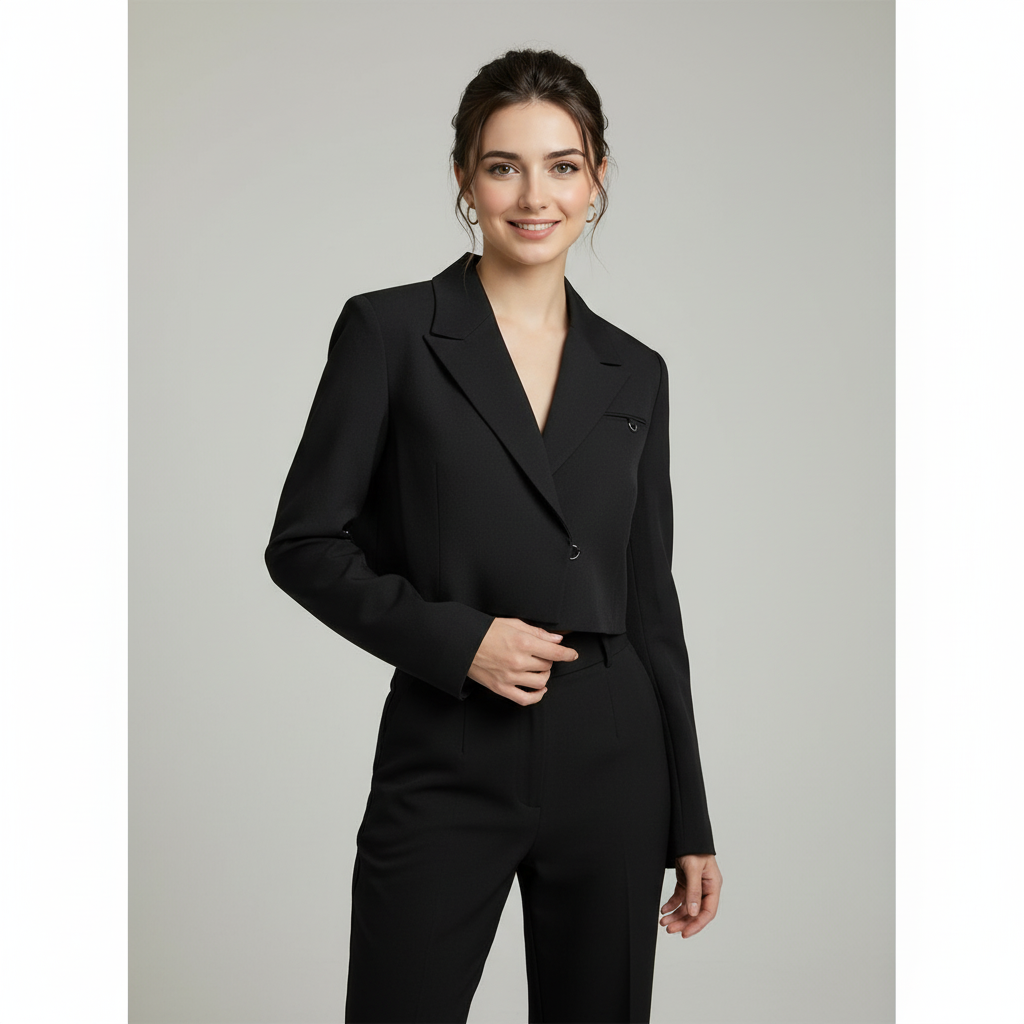 • Styling Tip: Wear it with high-waisted wide-leg trousers and a pointed heel for a dominant professional aesthetic, or style it over a midi dress to add structure to a softer look.