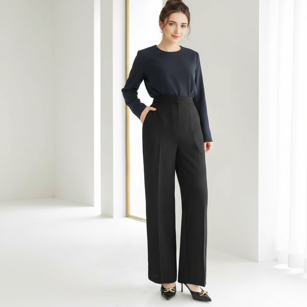 Elevate your wardrobe with our Women’s High Waisted Black Wide Leg Trousers, designed for timeless elegance and everyday versatility. These tailored black trousers feature a flattering high-rise waist and a sleek wide-leg silhouette that creates a polished and sophisticated look perfect for work, formal occasions, or smart casual outfits.